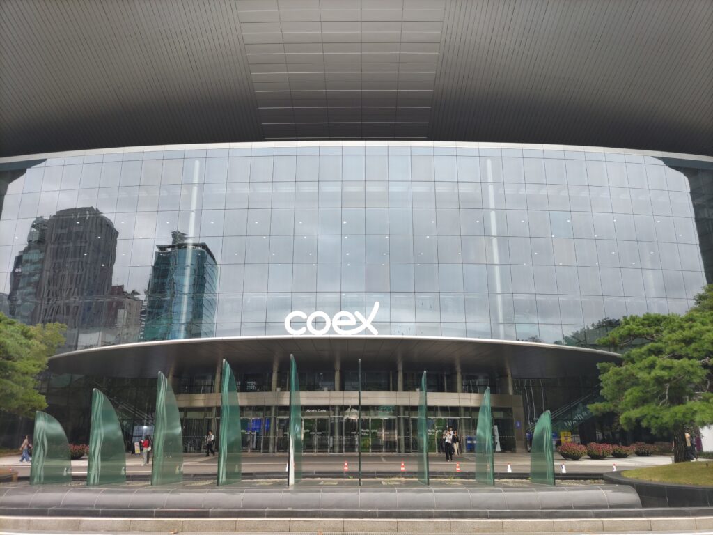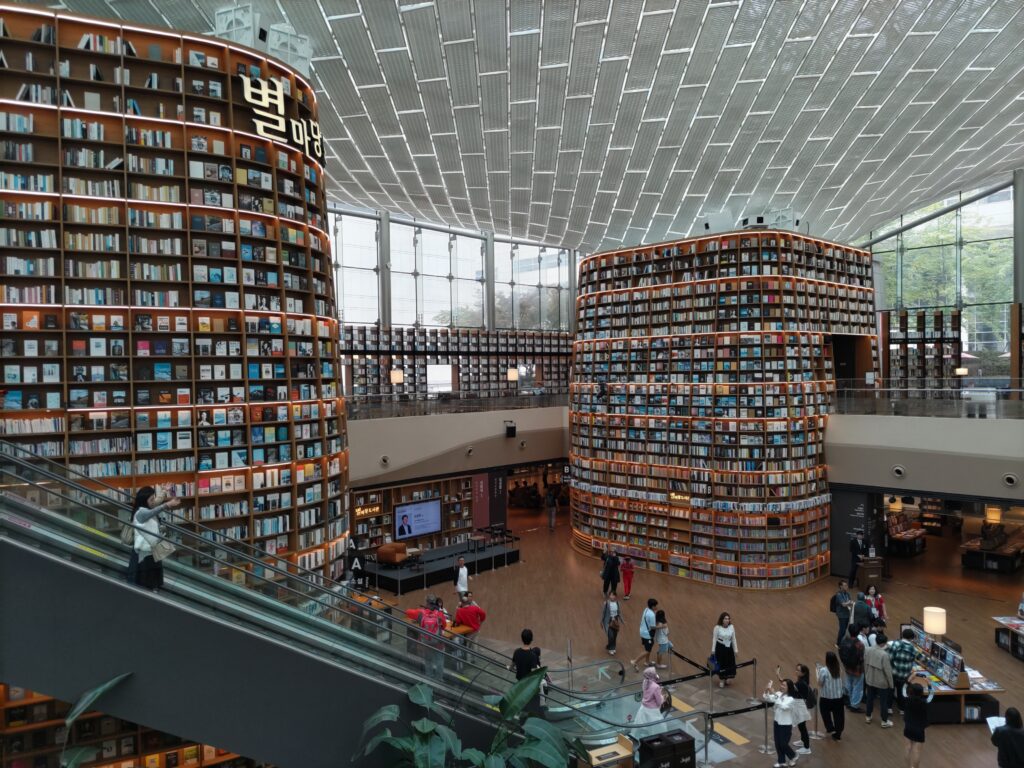 諸般の事情で成田からの移動でした.飛行機は約2時間,仁川空港から会場の江南COEXモールまではリムジンバスで1時間半ほどです.COEXモールはコンベンションセンターとショッピングモール,巨大図書館(写真)などが組み合わされた大きな施設です.会場内の別ホールで“日韓交流おまつり”が開催されており,参加者と思われる鬼殺隊その他の方が廊下にたくさんいました.今回の現地参加は私1人ですが,e-Posterで当教室から複数名が発表をしています.