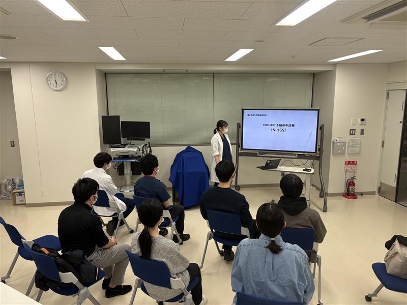 2025年12月23日に「救急外来でのNIHSSのとり方」のレクチャーを開催しました.約10人の学生さん・研修医の先生方が参加してくれました.次はぜひ実際の臨床の現場でNHISSを一緒に評価しましょう.