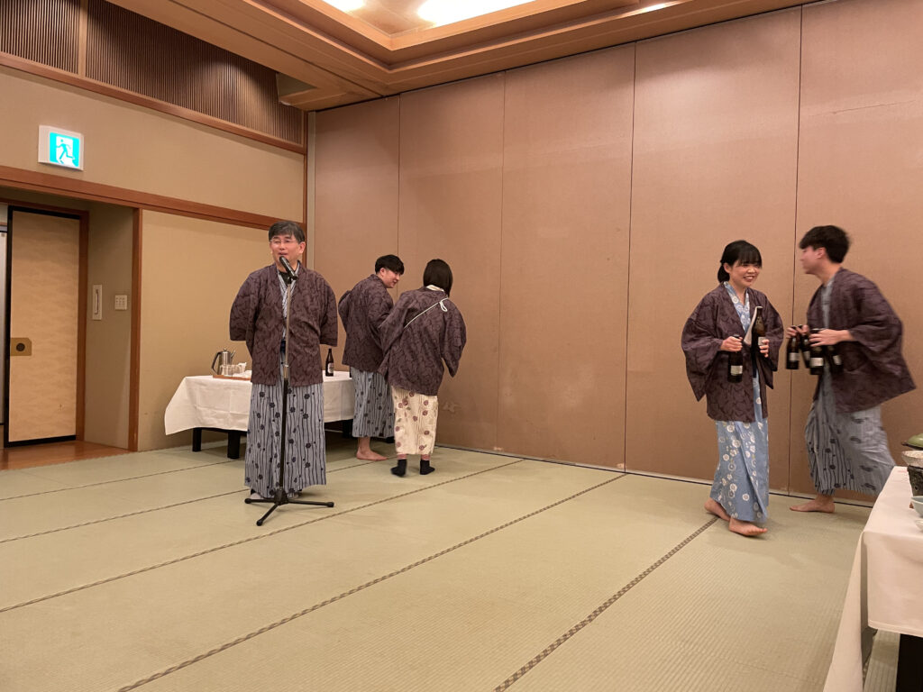 レジデント・新人看護師さんによる出しもので盛り上がり,また深夜まで教授を囲んでみんなで楽しく語らいました.