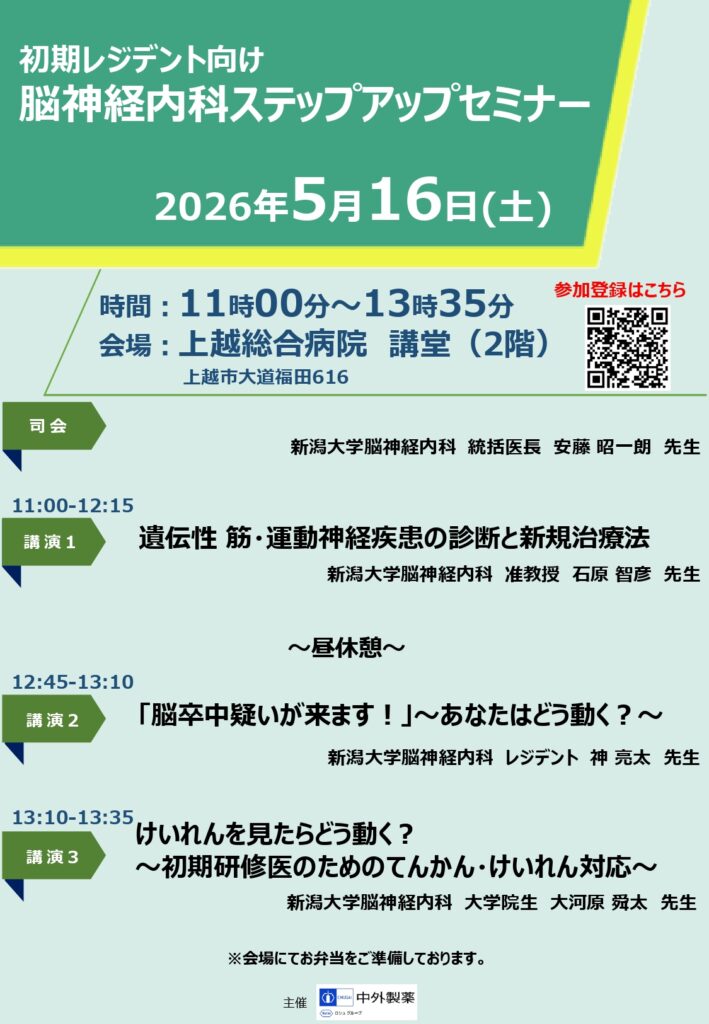 2026年5月16日に上越総合病院で,脳神経内科ステップアップセミナーを予定しています.